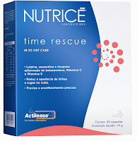 Além de adotar uma alimentação saudável é importante aproveitar os benefícios de Time Rescue, o nutricosmético da Nutricé®, que apresenta tripla ação antioxidante, ajudando a neutralizar os radicais livres e a minimizar a degradação de colágeno.