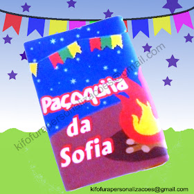 Esses dias eu conheci a recém-nascida Kifofura Eventos. É uma empresa de lembrancinhas e artigos personalizados que usa toda a criatividade para agradar os seus clientes. Ela personaliza tudo ... desde as lembrancinhas, até os docinhos, guloseimas, copos, e tudo mais. A festa fica, literalmente, com a nossa cara! :)
